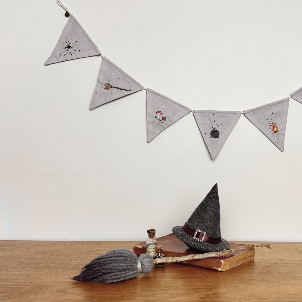 A miniature G rated witch bunting inspired by my love of Shakespearean female archetypes with supernatural powers is something that I am proud to add to my Halloween decor.