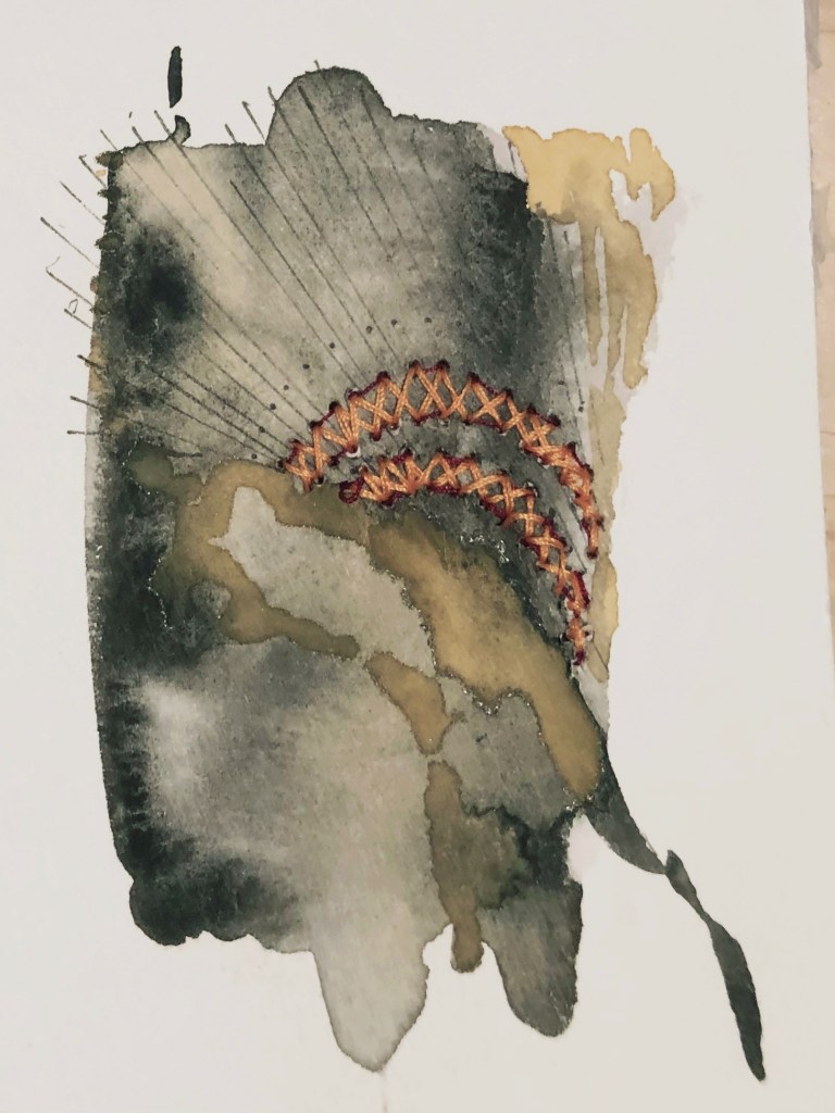 watercolour/ink/cotton thread