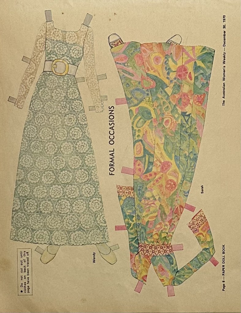 The Australian Women’s Weekly1 gave a bonus insert of ‘paper doll dress-up fun’ in their December 1970 edition. It’s over 50 years old and it’s stunning.